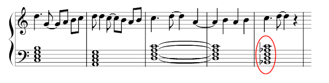 (score extract for illustration only; harmony shown as block chords for easy visualisation)